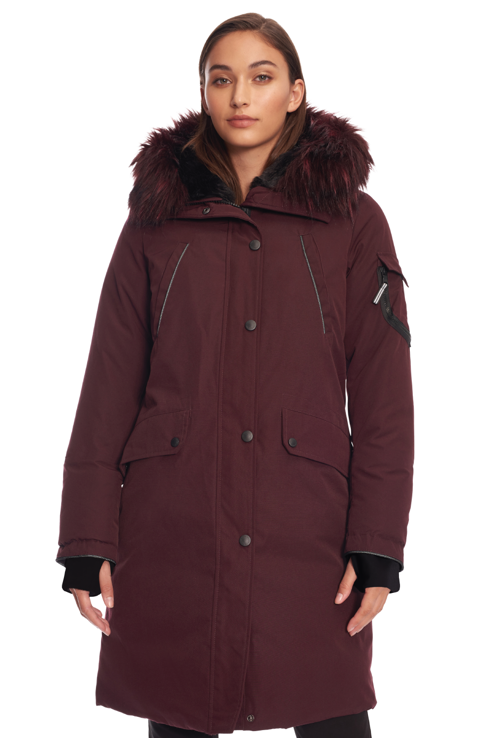 KOOTNEY | WOMEN'S VEGAN DOWN (RECYCLED) MID-LENGTH PARKA, CRIMSON