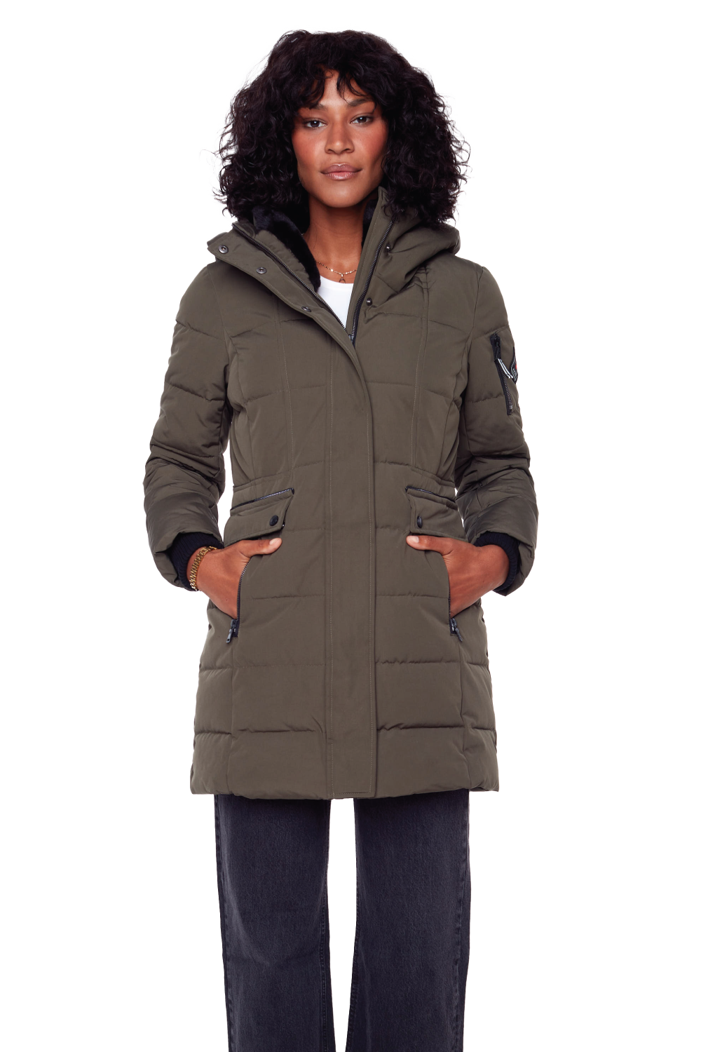 KOOTNEY | WOMEN'S VEGAN DOWN (RECYCLED) MID-LENGTH PARKA, OLIVE