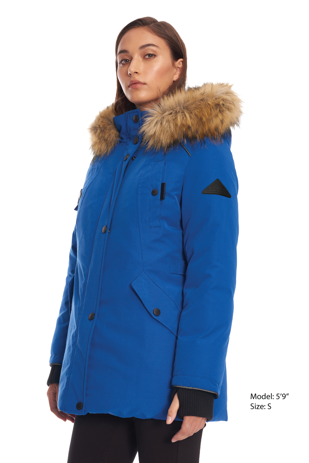 LAURENTIAN | WOMEN'S VEGAN DOWN (RECYCLED) LONG PARKA, COBALT