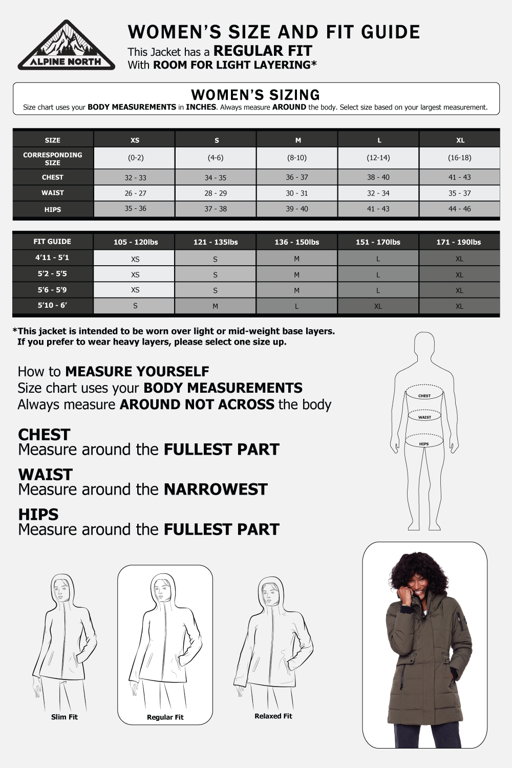 Our jackets are seriously warm, so we have designed them to be worn over light clothing or base layers. If you are someone who loves to layer up with heavier sweaters, we suggest ordering one size up from your normal size.