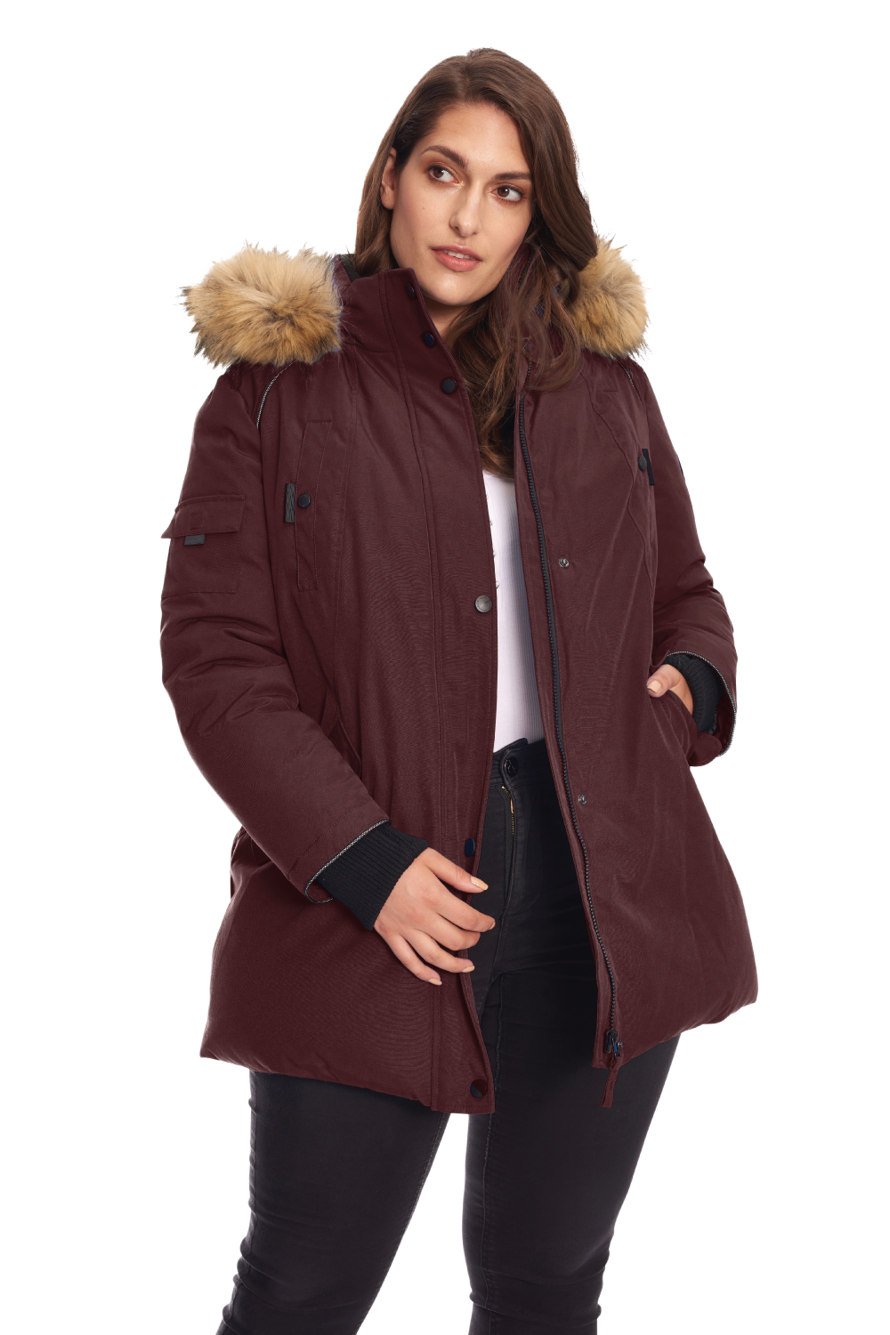KOOTNEY PLUS | WOMEN'S VEGAN DOWN (RECYCLED) MID-LENGTH PARKA, CRIMSON (PLUS SIZE)