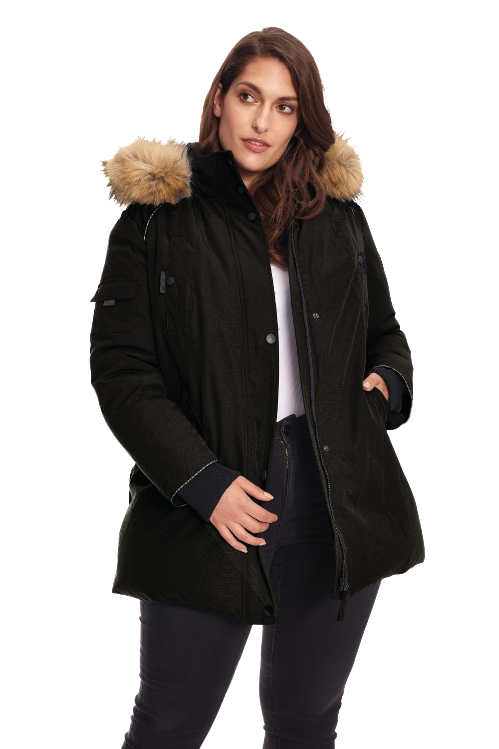 KOOTNEY PLUS | WOMEN'S VEGAN DOWN (RECYCLED) MID-LENGTH PARKA, OLIVE (PLUS SIZE)